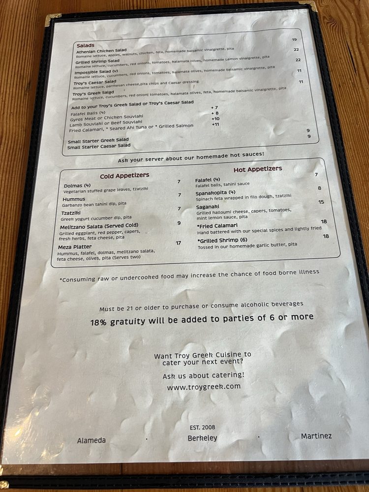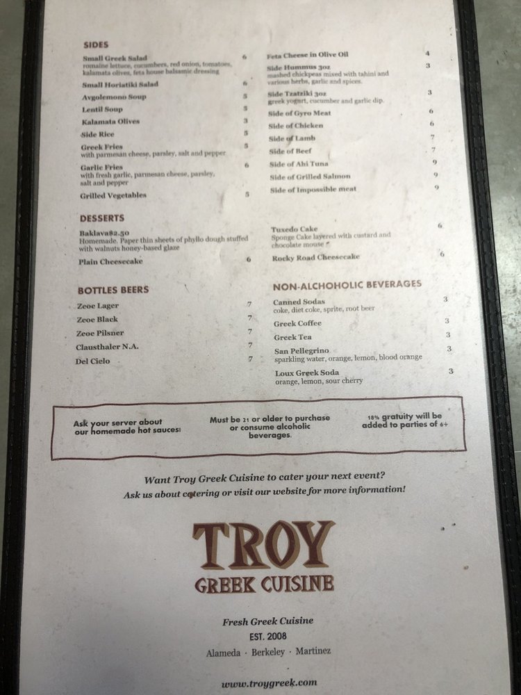 Welcome to Troy, the new gem of Greek cuisine nestled in Alameda. With its extensive menu, Troy promises to take your taste buds on a delightful Mediterranean journey. The inviting atmosphere welcomes diners with both indoor and outdoor seating, making it perfect for groups, families, and casual outings.
