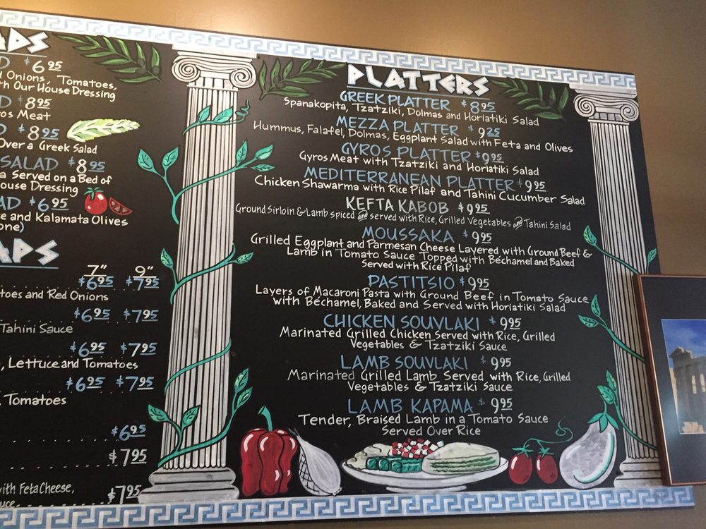 Highlights include the Beef Souvlaki Platter, featuring tender charbroiled ribeye complemented by grilled veggies and tzatziki, as well as the mouthwatering Gyro Platter, which brings the authentic flavors of Greece to your plate. Vegetarian options abound, with dishes like the Meza Platter showcasing a delightful array of hummus, falafel, and dolmas.